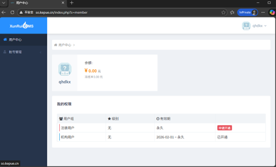 權(quán)限:用戶權(quán)限-用戶中心菜單,也做了設(shè)置